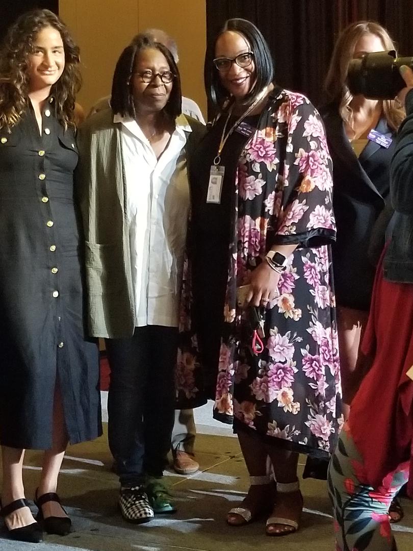 Whoopi Goldberg poises for pictures at fundraiser.