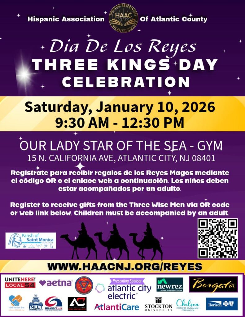 On Saturday, Jan. 10, the Hispanic Association of Atlantic County will host their Three Kings Celebration/Dia De Los Reyes, at Our Lady Star of the Sea Church Gym, 15 North California Avenue in Atlantic City, from 9:30 a.m.-12:30 p.m.