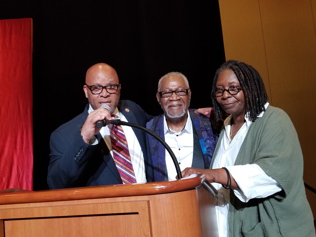 Atlantic City Mayor Frank Gilliam, Museum founder Ralph Hunter and Whoopi Goldberg.
